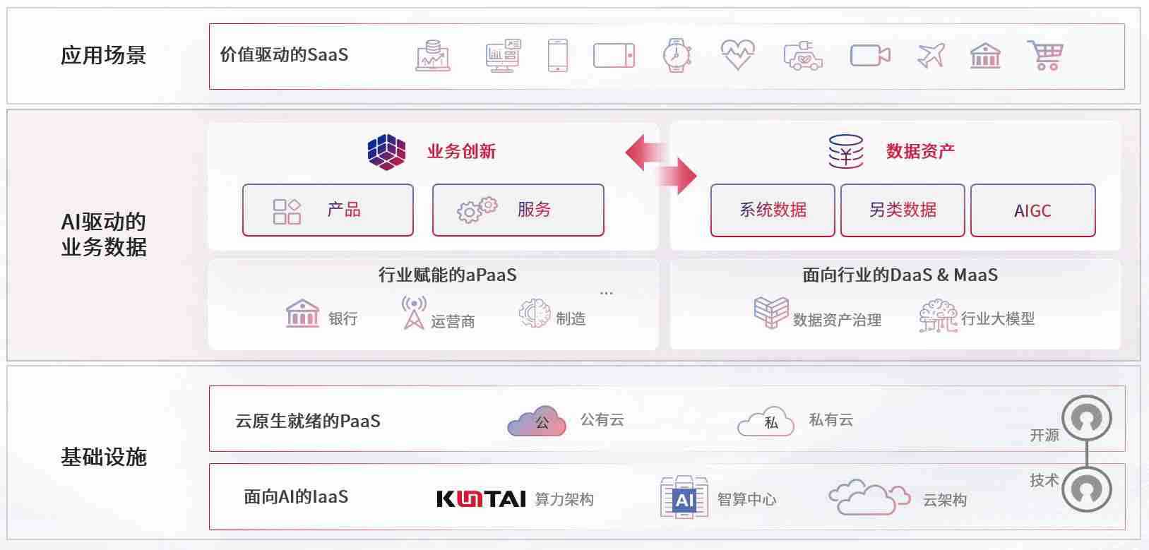 数字时代,,,,围绕企业数字化转型的关键要素,,,3223.bet数码开创性的提出数云融合战略和技术体系框架,,,,着力在云原生、、、数字原生、、、、AI原生和信创产业上架构产品和服务能力,,,为处在不同数字化转型阶段的快消零售、、、、汽车、、、金融、、、、医疗、、、、政企、、教育、、运营商等行业客户提供泛在的敏捷IT能力和融合的数据驱动能力,,,构建跨界融合创新的数字业务场景和新业务模式,,,,助力企业级客户建立面向未来的核心能力和竞争优势,,全面推动社会的数字化、、、、智能化转型升级。。。。